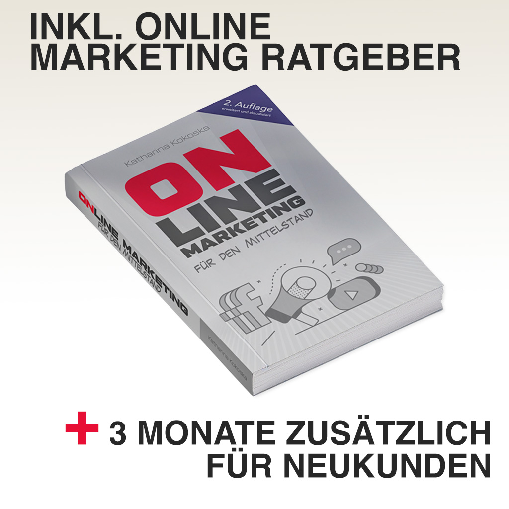 • Bei Buchung bis zum 31.12.2025: 3 Monate extra (für Erstkunden) + unser Online-Marketing-Ratgeber für den Mittelstand (.pdf)